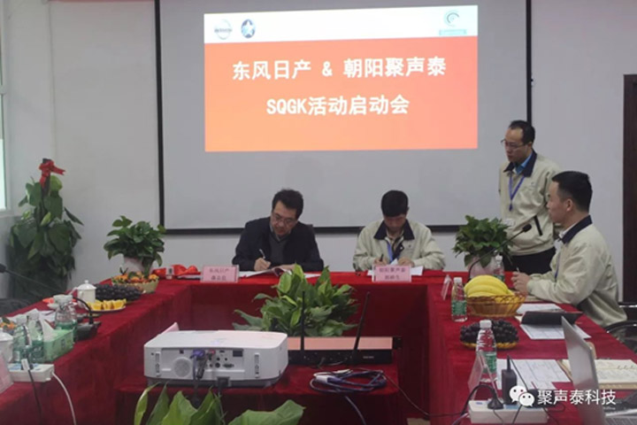 12月6日,東風日產(chǎn)質(zhì)量保證部部長森英昭一行三人蒞臨朝陽聚聲泰(信豐)科技有限公司(以下簡稱朝陽聚聲泰),進行了SQGK活動的啟動儀式。
